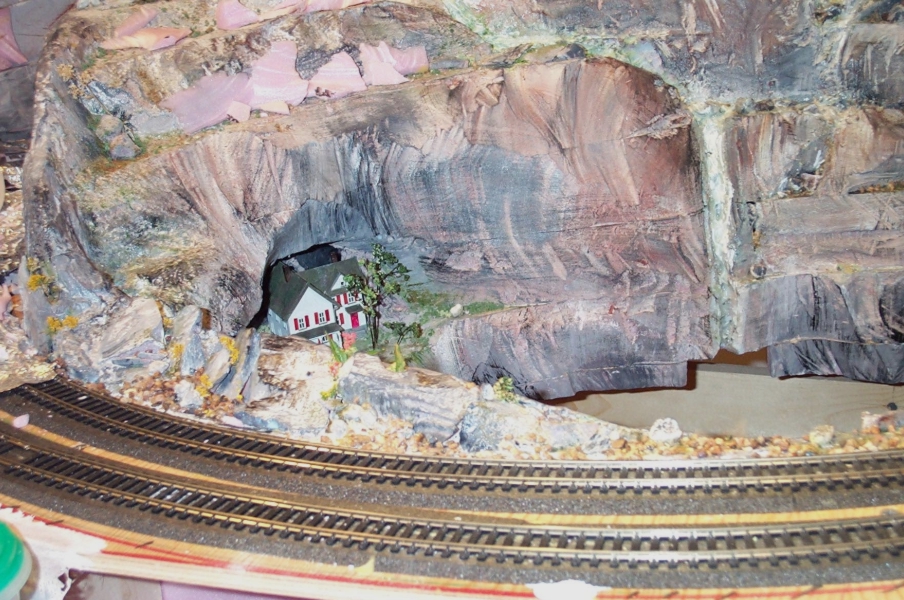 wanted to create a sense of distance so we went with N-scale. Also note the waterfall being