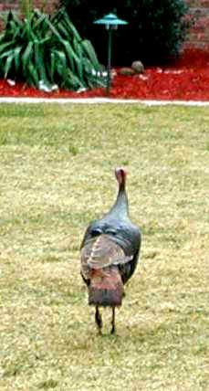 tall; more when it stretches it's neck, and it looks like a wild turkey, except